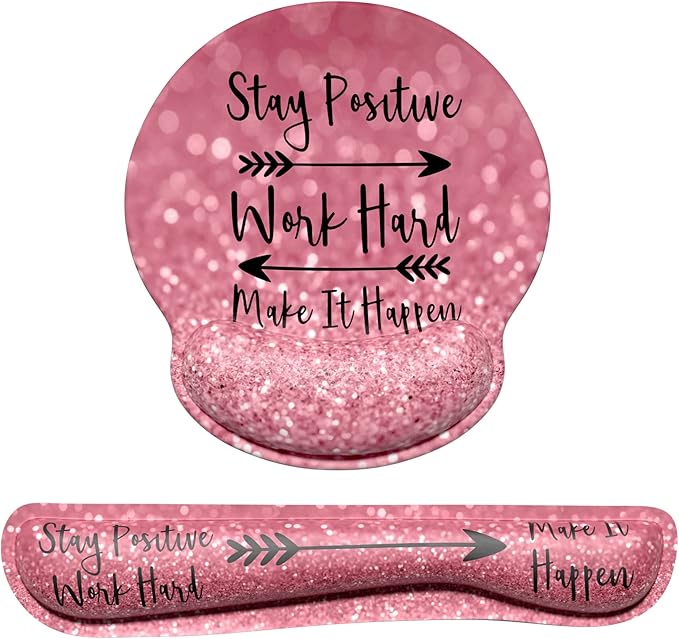 Dapesuom Keyboard Wrist Rest and Mouse Pad with Wrist Support, Cute Memory Foam Cushion for Keyboard and Mouse Set, Ergonomic Desktop Pad Rests with Non Slip Base for Easy Typing & Pain Relief, Quotes