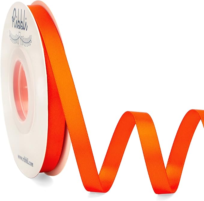 Ribbli Double Faced Torrid Orange Satin Ribbon,3/8” x Continuous 25 Yards,Use for Bows Bouquet,Gift Wrapping,Floral Arrangement