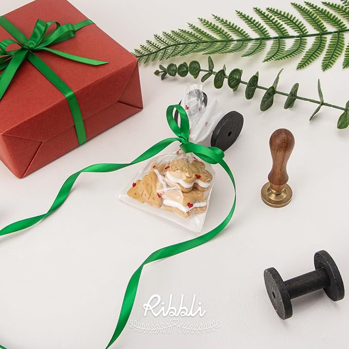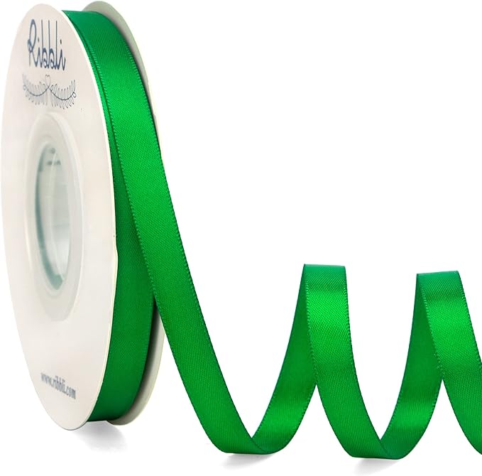 Ribbli Double Faced Emerald Green Satin Ribbon,3/8” x Continuous 25 Yards,Use for Bows Bouquet,Gift Wrapping,Floral Arrangement