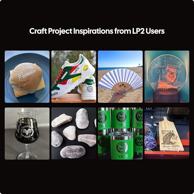 - LaserPecker LP2 Ultra-Portable Design: Compact 1kg handheld engraver with built-in handle—perfect for on-the-go creativity. Break free from workspace limits and engrave anywhere.