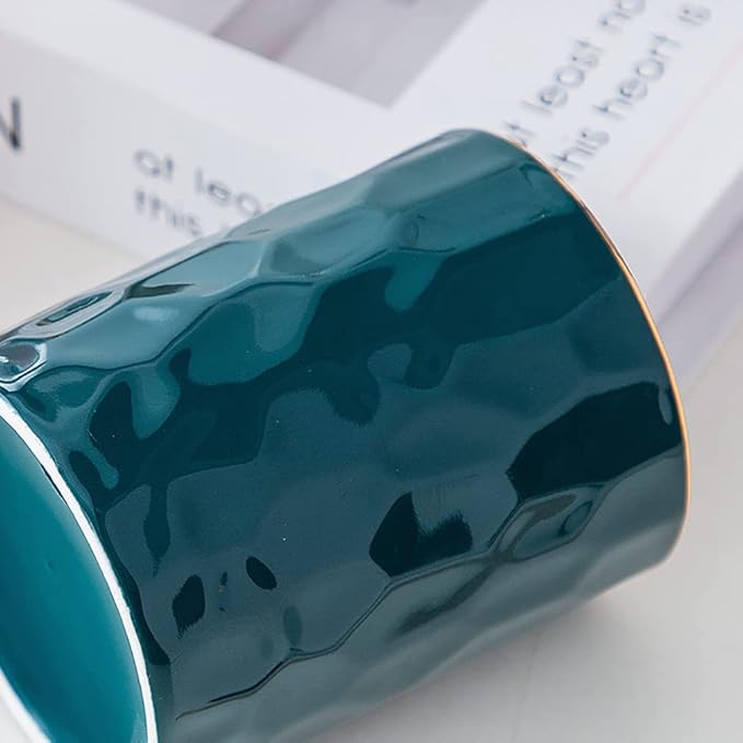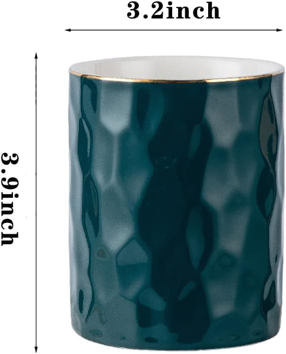 Ceramic Pen Holder Stand Cup Pencil Holder Organizer Makeup Brush Holders for Home Office Desk (Dark-Green)