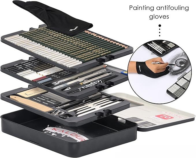 KALOUR 72-Pack Sketch Drawing Pencils Kit with Sketchbook and 3-color Drawing Paper,Tin Box,Include Graphite,Charcoal,Drawing Glove and Artists Tools,Pro Art Drawing Supplies for Adults Beginner