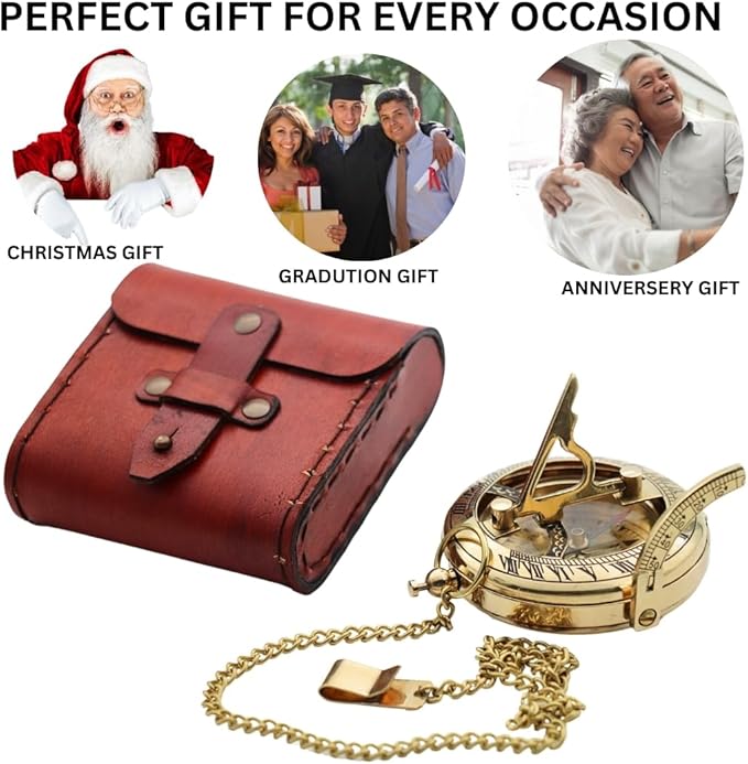 - Antique Brass Sundial Compass: High-quality brass with a 3-inch diameter and antique finish. Ideal keepsake for antique decor and a stylish copper gift for men.