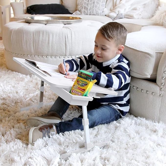 - ADJUSTABLE WORKSTATION: Customize the height and angle of the TotalDesk for optimal comfort while you work, draw, write, or eat! Features a PVC leather finish and a non-slip Desktop Stopper to keep belongings from falling off.