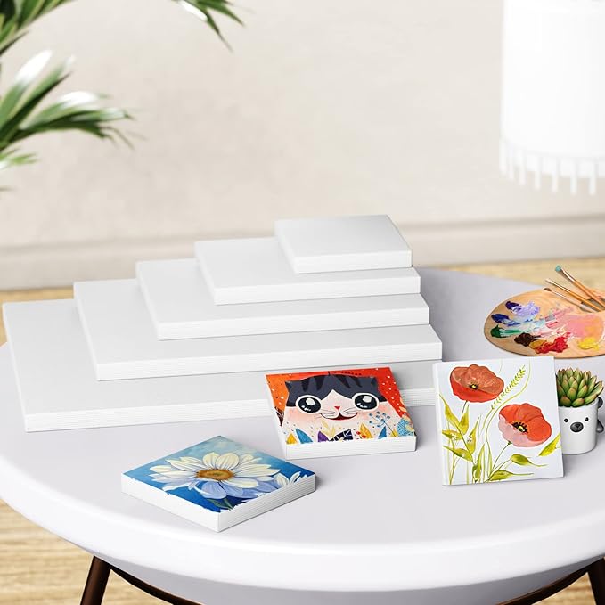 - Our blank canvas set come with 5 different sizes of white canvas, the multi size-from the small canvas of 4x4" to the large canvas of 11x14"would meet all the need when you create the art and craft for multi painting purpose and places such as art classes, artist studios, kid's birthday parties and other painting events. 4pcs each for 4X4",5X7",8X10" and 3 pcs each for 9X12",11X14"