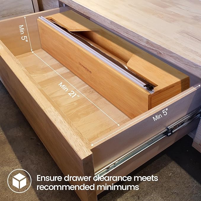 - Universal 18" Roll Compatibility - Holds 18-inch (45.7 cm) rolls including aluminum foil, plastic wrap, freezer paper, and butcher paper. Perfect for Kirkland/Sam’s Club foil (18"x500ft) and most standard 18"x175ft butcher paper rolls. Note: Ensure roll diameter is under 3.6" and measure drawer space before installation.