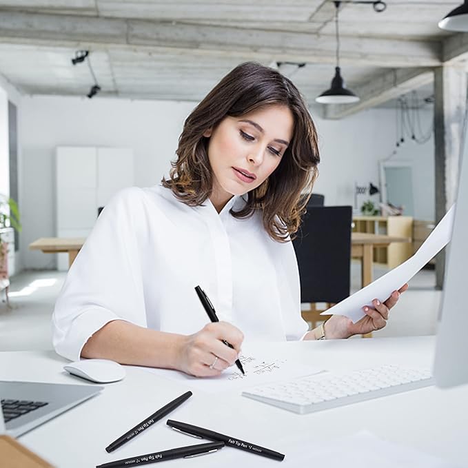 Lelix Felt Tip Pens, 30 Black Pack, 0.7mm Medium Point, Felt Tip Markers Pens for Journaling, Writing, Note Taking, Planner, Perfect for School Office and Art Supplies