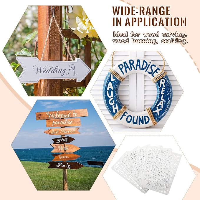 - Enough to DIY: you will obtain 6 pieces of wood burning stencils, available in assorted styles, well packed and fine in workmanship, which can satisfy your requirements of engraving, crafting, daily decor and more
