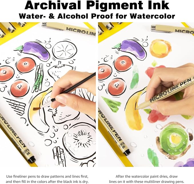 - 【100% Satisfaction Guarantee】This set of 12 micro-line pens is a good choice for beginners in painting, sketching, writing, drawing, lettering, illustration, scrapbooking, and bullet journaling. Customer satisfaction is our number one priority. If in any unfortunate situation the fineliner ink pens are inoperable, damaged, leaked, please simply request a refund or replacement