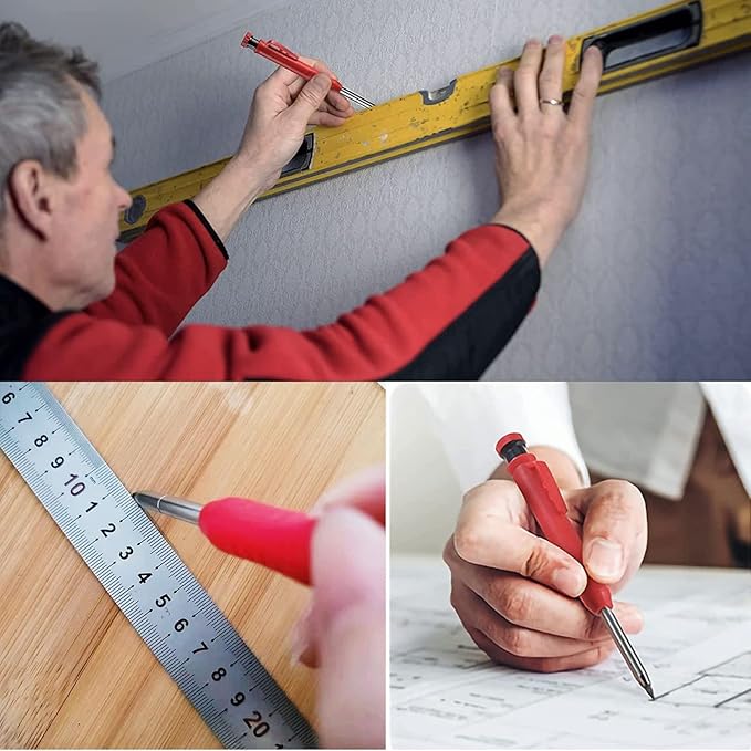 - Deep-hole Carpenter Pencil: Designed with an extended tip of 43mm long, it can reach areas that are difficult to reach by other carpenter pencils. It is suitable for marking through holes or other narrow areas.