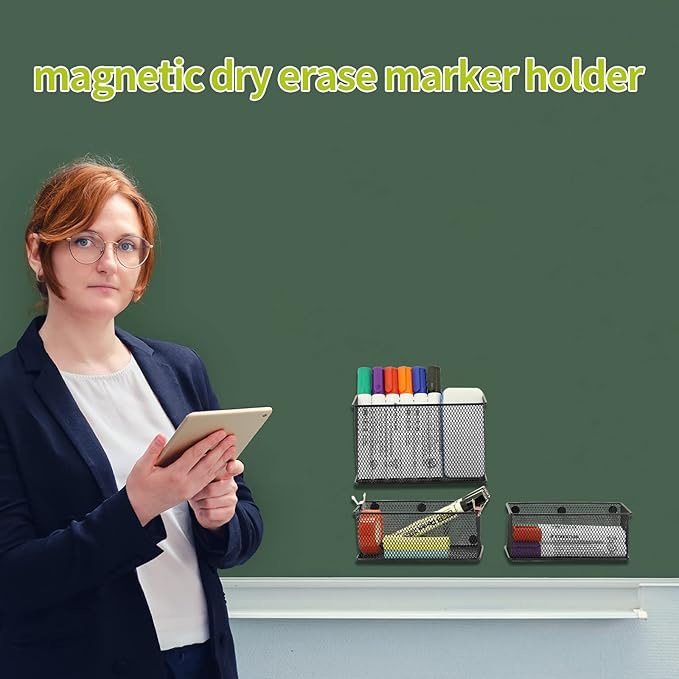 - [Simple Design for Organization] With this sleek mesh design, provide a perfect accent to your fridge, locker and whiteboard. Keep your loose pens, pencils and markers organized with this mesh basket that is durable and functional for parents, teachers and kids alike. Since it can be used in a classroom or household, this holder makes a perfect gift for teachers as well students to show your appreciation.