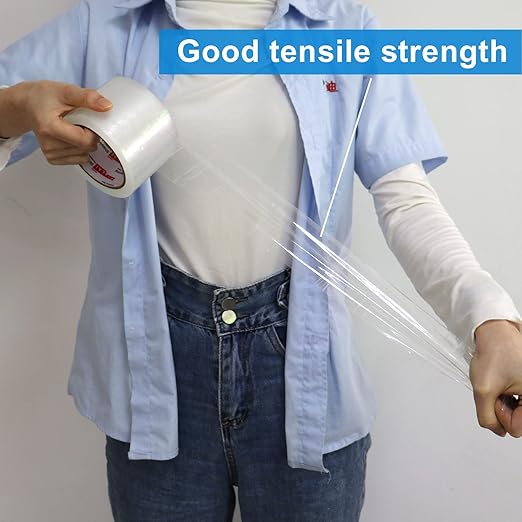- EASY TO USE: Our 2.4mil thick clear tape is very good in thickness and toughness, will not tear or split easily. Provides excellent holding power for heavy-duty packaging and shipping. Strong seal on all box types, including harder-to-stick-to 100% recycled boxes. It' s easy to open, unwind and suitable for all standard tape dispensers and tape guns
