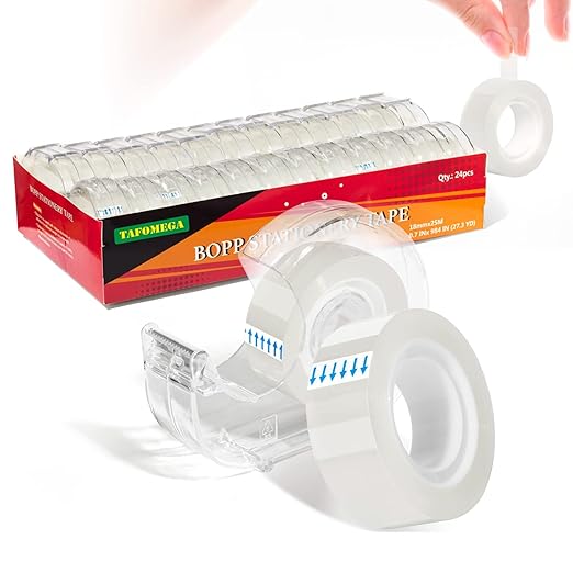 Transparent Tape, Clear, Christmas Gift Wrap Tape, Office Repair Home School Supplies 7/10 X 1000 Inches 24 Rolls with Dispenser