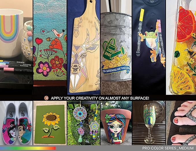 - ✔️MULTI SURFACE –The highly pigmented ink gives you nice opaque coverage on most surfaces such as stone, glass, wood, metal, fabric, porcelain, canvas, plastic, paper, cardboard, pottery, shoes, shirts, etc. The fade-resistant paint works great on dark and light surfaces. It dries quickly to prevent smudging.