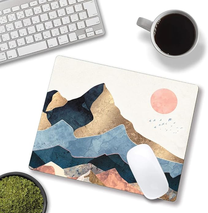Mouse Pad, Cute Mountain Sunrise Mouse Pads, Square Washable Cloth Personalized Mouse Mat with Design, Gaming Office Home Non-Slip Rubber Base Computer Mousepad