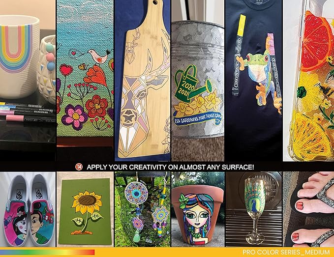 - ✔️MULTI SURFACE –The highly pigmented ink gives you nice opaque coverage on most surfaces such as stone, glass, wood, metal, fabric, porcelain, canvas, plastic, paper, cardboard, pottery, shoes, shirts, etc. The fade-resistant paint works great on dark and light surfaces. It dries quickly to prevent smudging.
