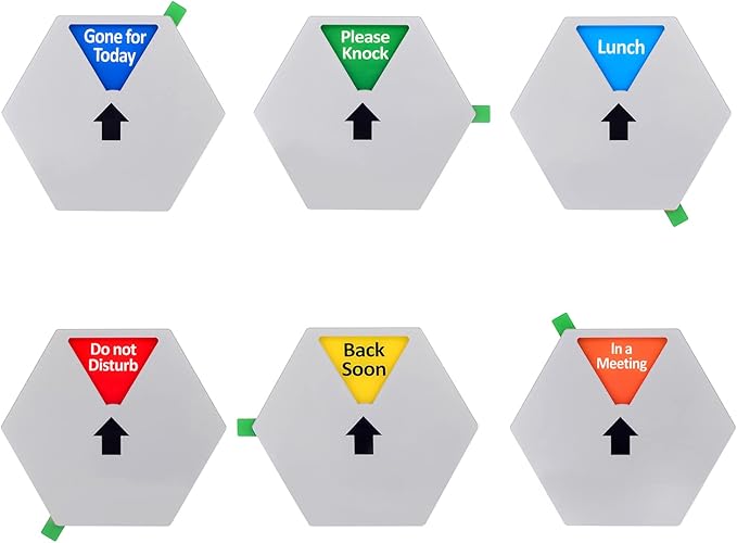 - Easy to switch between Do Not Disturb, Please Knock, In a Meeting , Back Soon, Lunch and Gone for Today, but the status will remain unchanged unless you change it manually because inside the sign there are small magnets that will keep the status stay in place