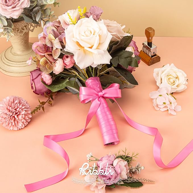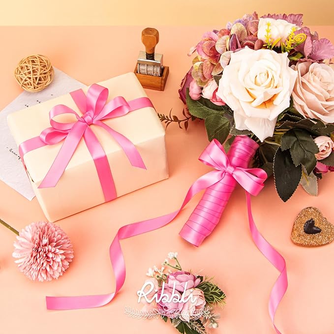 Ribbli Hot Pink Satin Ribbon 5/8 inch x Continuous 25 Yards,Double Faced Satin Use for Craft, Gift Wrapping, Christmas Ornaments, Hair Bows, Bouquet Bows