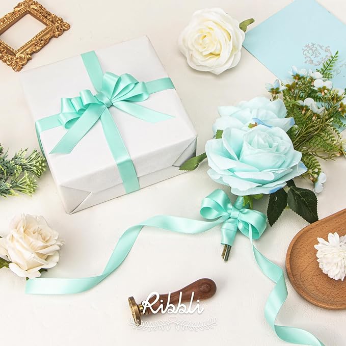 Ribbli Aqua Blue Satin Ribbon 5/8 inch x Continuous 25 Yards,Double Faced Satin Use for Craft, Gift Wrapping, Christmas Ornaments, Hair Bows, Bouquet Bows