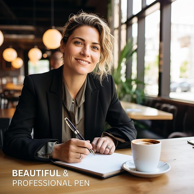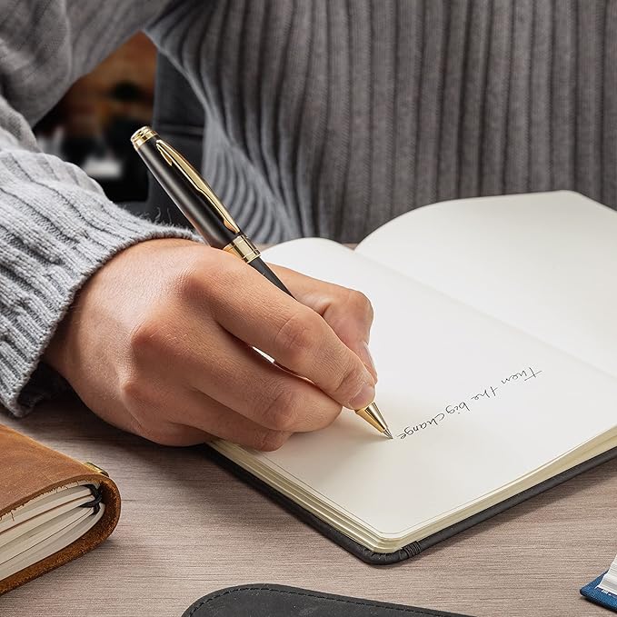 - ENJOY BEST WRITING PEN – Quality pens for smooth writing. Luxurious classy matte black and gold metal rollerball pen. Refillable premium roller ball ink pen for easy handwriting
