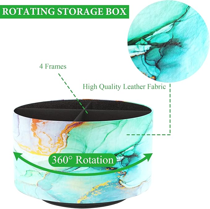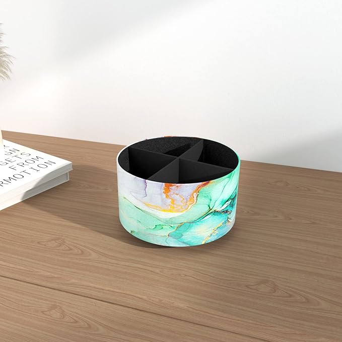 Hennaja Round Leather Art Supply Organizer,Remote Control Holder,360 Degree Rotating,Multi-Functional Pencil Holder,4 Compartments Desktop Stationary Organizer(1-Splash Ink)