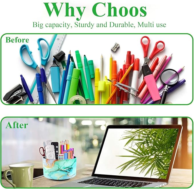 - ✎360° Revolving Design: You can freely rotate the pen holder steadily left and right,unique spinning base design allows easy access to items from any directions.The non-slip pads on the bottom keep it stay in place when rotating.