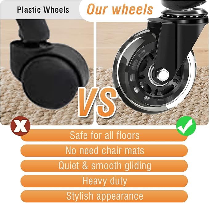 - 【Protect Your Floors From Scratches And Damage】Are you tired of swivel chairs that scratch your hardwood floors? Unlike many standard desk chairs, our swivel desk chair features top standard rubber chair wheels that ensure quiet and easy gliding. They are safe for all types of floors and take the fuss out of using a mat under your high computer chair