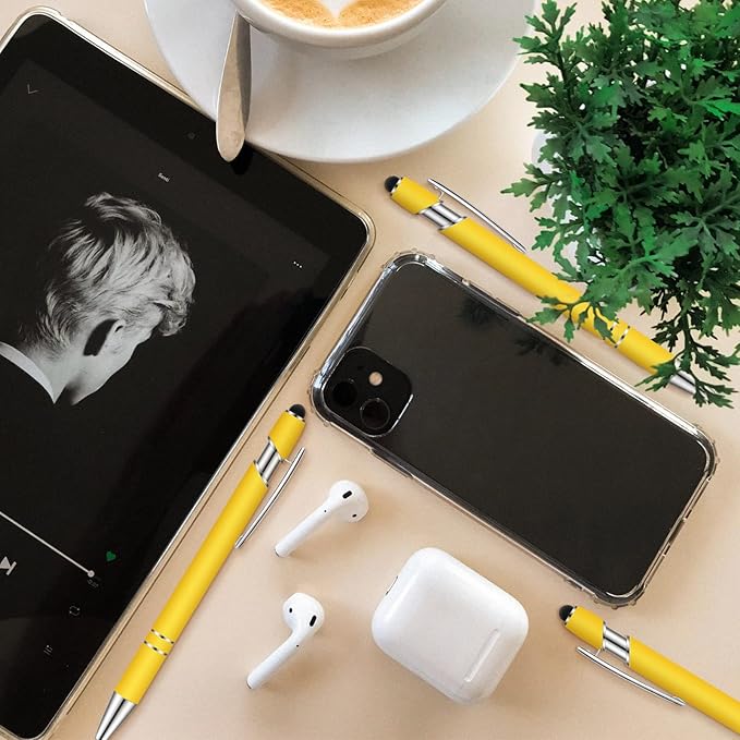 12 Pieces Ballpoint Pen with Stylus Tip, 1.0 mm Black Ink Metal Pen Stylus Pen for Touch Screens, 2 in 1 Stylus Ballpoint Pen (Yellow and Silver)