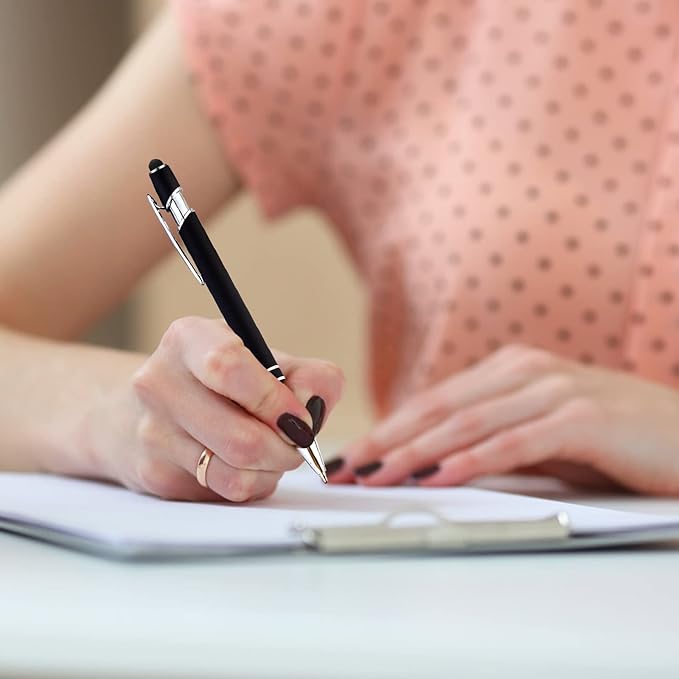 - ❤【Convenient Quantity】Get 12 black ballpoint pens with stylus tips, perfect for daily use and replacements. Each pen is 5.5 x 0.4 inch/ 14 x 1 cm, the ideal size for a pen. Note: The ink refill is black.