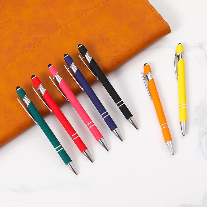 Ballpoint Pen with Stylus Tip, Soft Touch Click Metal Pen, 1.0mm Medium Point, Black Ink, 12 Count(Peach)