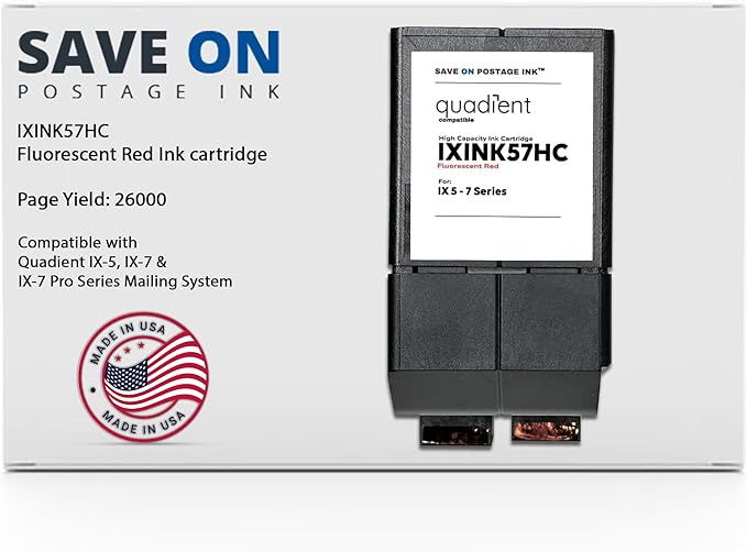 - Quality & Performance: Our IXINK57HC ink cartridge for printer offers a high yield of up to 26,000 pages. This cartridge provides a reliable and efficient solution for your Quadient IX-5, IX-7 & IX-7 Pro postage meter machine needs.