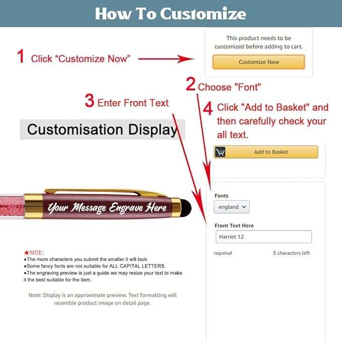- FREE PERSONALIZATION You can have up to 40 characters (including spaces) on each line, up to 2 customized lines are free. we use laser engraving technology to engrave the text on the pen without fading. As long as you click the "Customize" option, you can easily customize it. Beautiful appearance, suitable for gift.