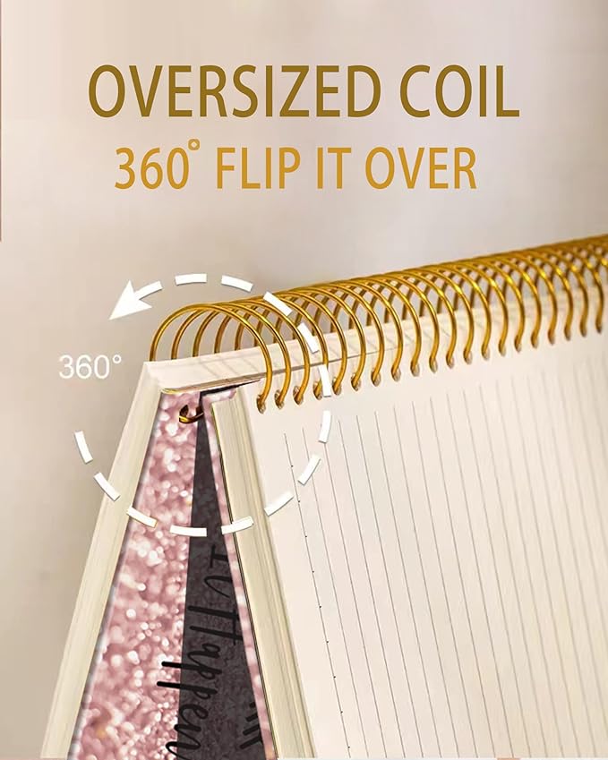 iampanda Spiral Journal Notebook,Strong TwinWire Binding with Premium Paper for Girl Women,Rose Gold and Silver Glitter Design 60 Sheets A5 College Ruled NotebookJournal,Perfect for School Office