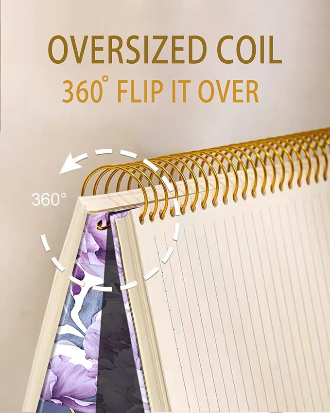 iampanda Spiral Journal Notebook,Strong Twin-Wire Binding with Premium Paper for Girl Women,Pretty Design 60 Sheets A5 College Ruled Notebook/Journal,Perfect for School Office Home Gifts,Purple Floral