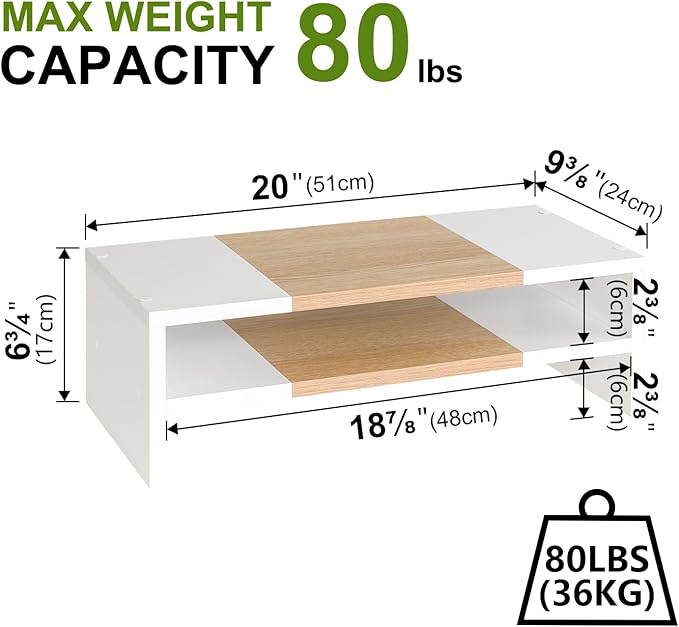 - Better Support to 80lbs: The computer stand is made of eco-friendly thicken MDF wood board, and process optimization to make the stand more beautiful and durable. This monitor stand riser is a good choice for your office, living room, bedroom, and study.