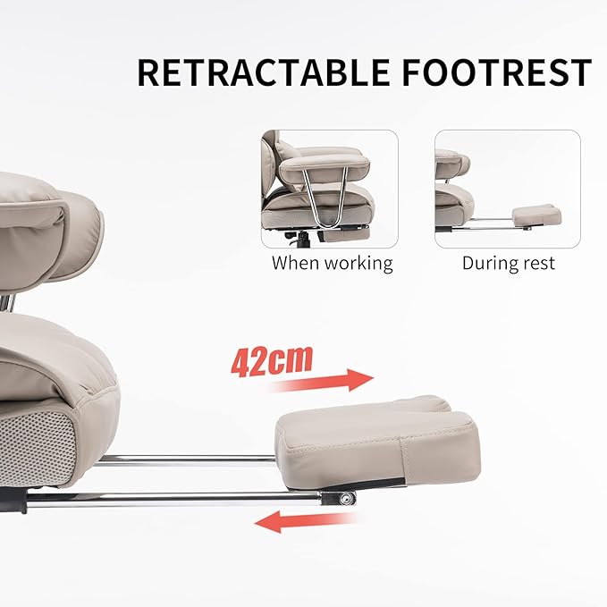 - ERGONOMIC RECLINING OFFICE CHAIR — This executive office chair features a 360° swivel, adjustable height, and a reclining backrest that tilts up to 135° for customized comfort. BUILT-IN FOOTREST & TILT TENSION CONTROL — Includes a retractable footrest and a tilt tension knob, allowing you to control the rocking pressure and find the perfect recline angle for working or relaxing. Ideal for your home office setup.