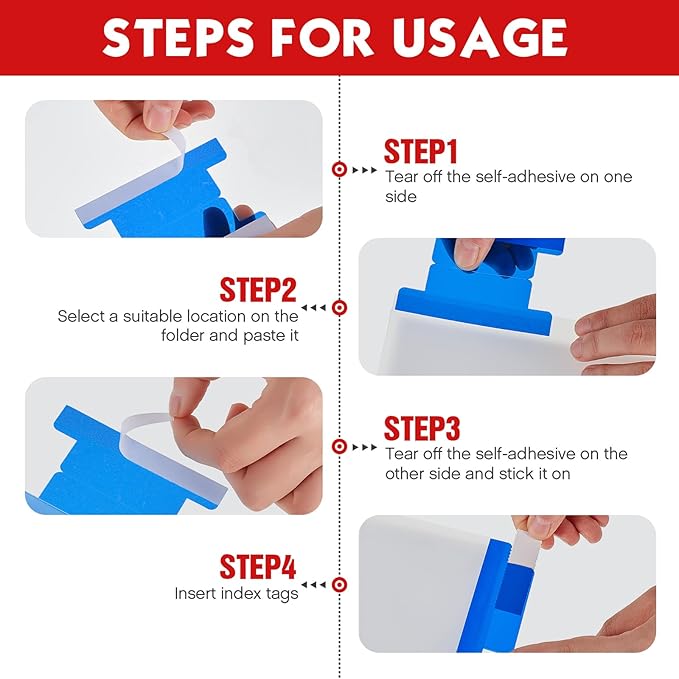 - Strong Material: these adhesive file folder tabs are made of clear plastic, reusable and clearly visible for easy viewing of note content; The design of the folder label allows the tabs to be inserted as you want
