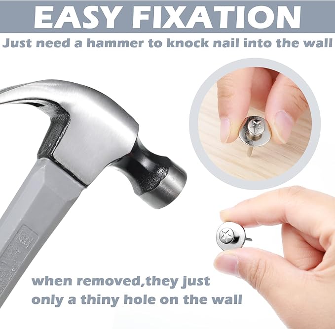 - Sturdy and Reliable: these hanging nails are made of quality stainless steel, not easy to rust or break, sturdy and light weight, not easy to fall off after installation, which are reusable and provide long term service for you, and you can use them with confidence