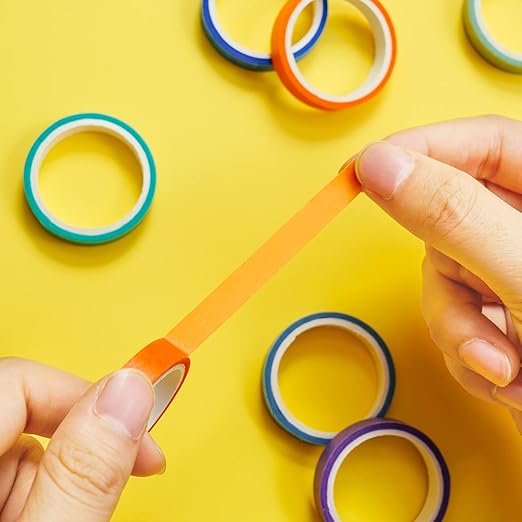 - 🌈Colored masking tapes are made of washi paper. Because they are detachable, they can be reused, can be torn off and re-attached, leaving no traces. The adhesive is also very good. it will not leave any glue stains! you can even write on the tapes.
