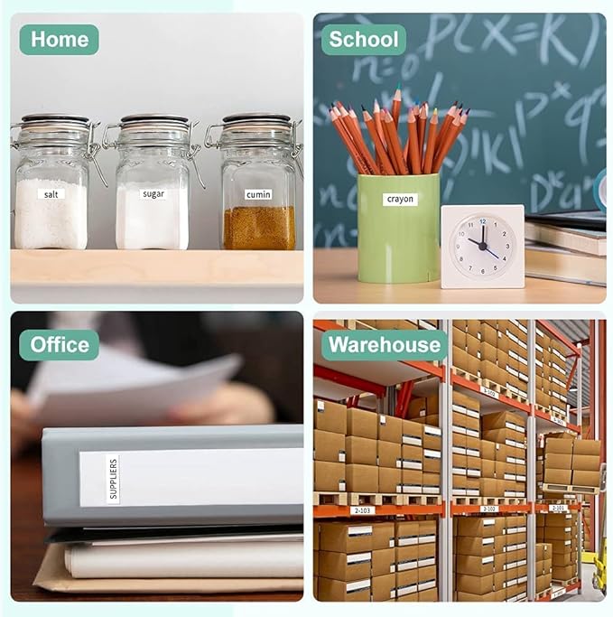 - Wide Applications: Compatible with labelmanager 160 refills 12m 1/2" D1 tape 45013s can be used indoors or outdoors. It's suitable for home, office, school, industry, warehouse, chemistry laboratory, hotel, and hospital and perfect for labeling kitchen seasonings, files, folders, shelves, and books