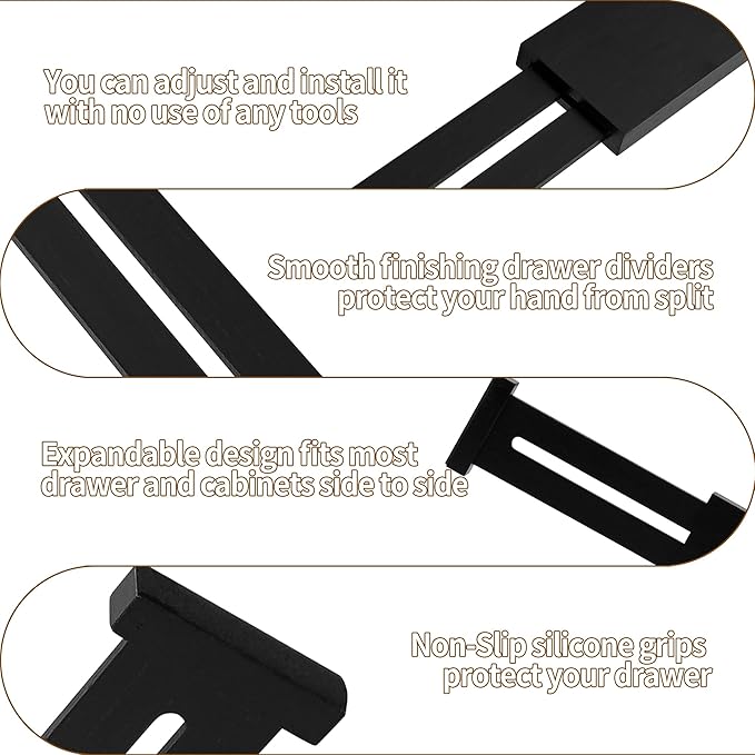 - Easy Installation & Removal: Expandable drawer divider has a built in spring to keep them in place and easy adjustment to meet your changing needs. Recommended for sturdy drawer
