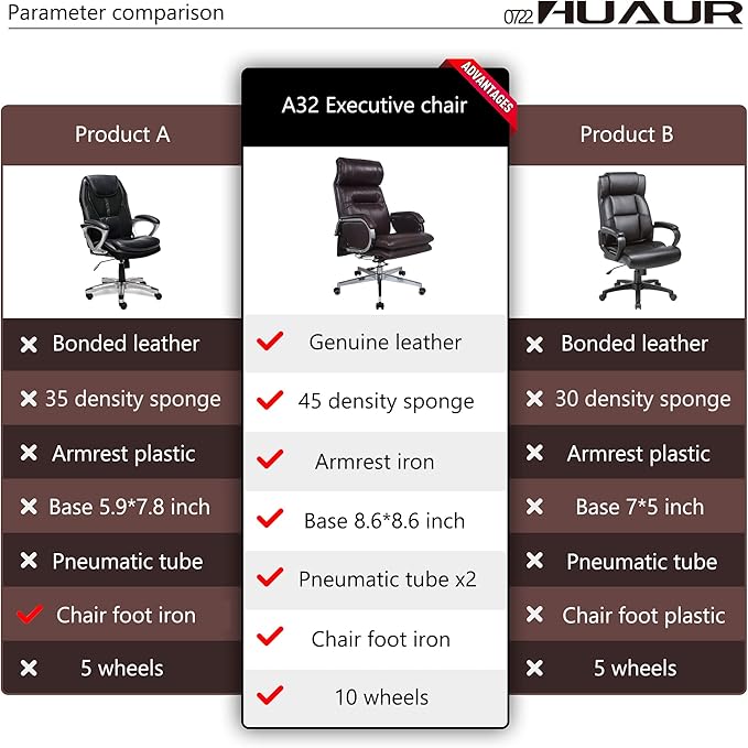 - MODERN MINIMALIST STYLE: square head shape, solid color genuine leather, embellished with high-gloss metal armrests to make the space brighter, cancel the extra flashy decoration on the exterior, and yearn for a fresh, natural, casual and relaxed office and home environment, I believe this will be your favorite executive chair!