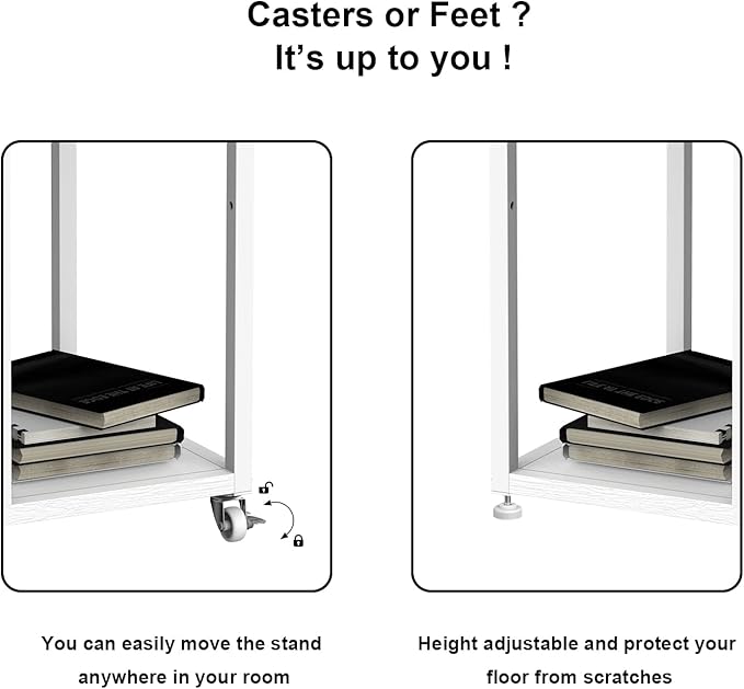 - Move Freely and Share the Convenience : This mobile printer stand equipped with 4 smooth gliding swivel wheels without scratching floors, you can easily slide the printer cart beside your desk for easy access, or move it to share with your partner; two wheels lock to keep it from moving while in use for safety and security.Adjustable anti-skid pads are also included