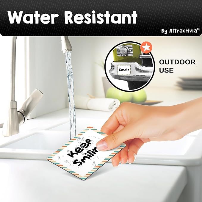 - Strong Magnetic Hold: Our dry erase magnets feature a powerful 0.02 inch thick magnetic back for instant and secure adhesion to any metallic surface, whether flat or slightly curved. Easily attach our dry erase stickers labels and remove without residue, ensuring a firm grip even on rounded surfaces.