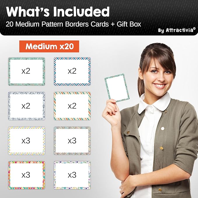 Dry Erase Magnetic Labels 3.7 x 2.8 in, Pattern Borders, Medium Dry Erase Magnets, 20-Pack, Colored Erasable Write-On All-Purpose Labels, for Office, Education, Home, Whiteboard