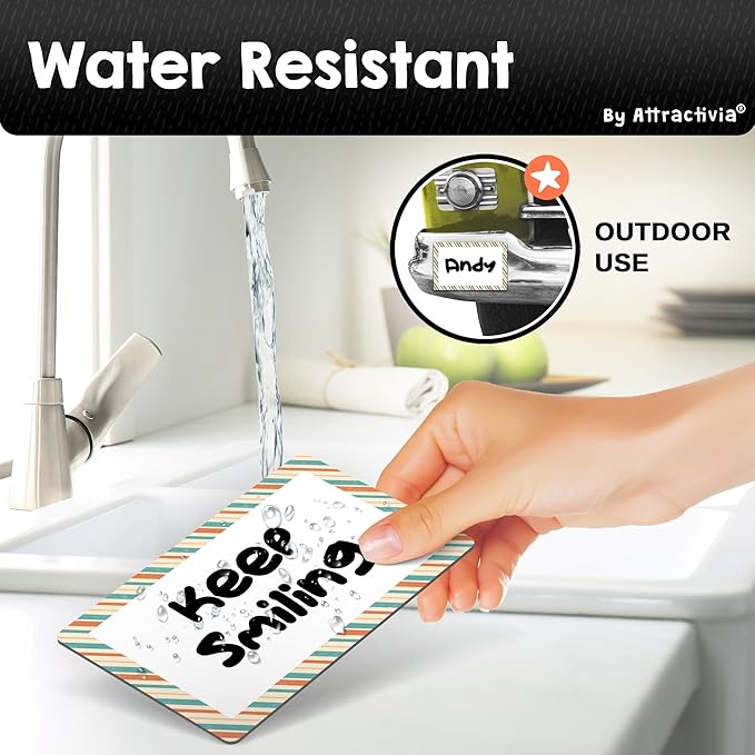 - Strong Magnetic Hold: Our dry erase magnets feature a powerful 0.02 inch thick magnetic back for instant and secure adhesion to any metallic surface, whether flat or slightly curved. Easily attach our dry erase stickers labels and remove without residue, ensuring a firm grip even on rounded surfaces.