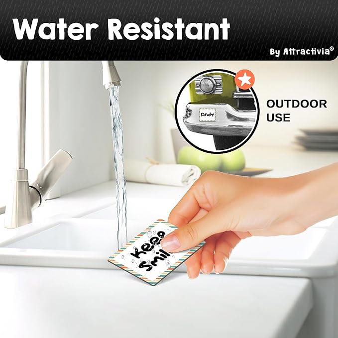 - Strong Magnetic Hold: Our dry erase magnets feature a powerful 0.02 inch thick magnetic back for instant and secure adhesion to any metallic surface, whether flat or slightly curved. Easily attach our dry erase stickers labels and remove without residue, ensuring a firm grip even on rounded surfaces.
