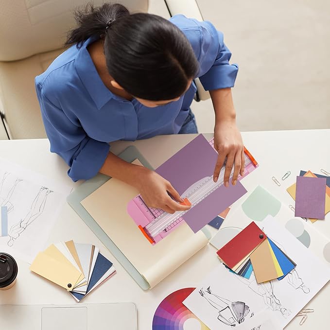 - ★【Portable and Safe】:You use this paper cutter for craft projects - much easier and more accurate than using scissors! Paper trimmer really helps that there is a ruler built in so you don’t have to measure by hand.if you wanted to cut small cards and did not want a big paper cutter. This worked perfectly. you will love that there is a safeguard to eliminate cutting yourself in error. This cutter is just what you was looking for and is small enough to store on a desk.