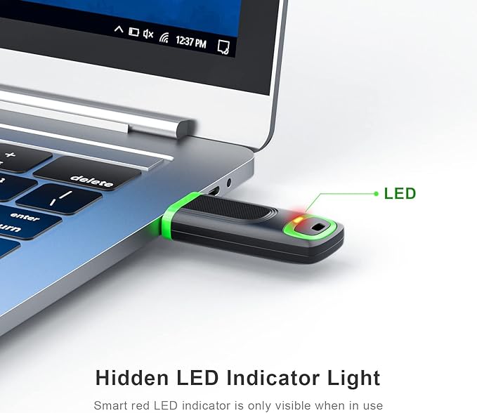 - Plug and Play: No need to install any software, just simply plug the memory stick into the port of your USB-compatible devices and the hidden LED indicator will light up. Compact size with non-slip design and ring hole is convenient for you to attach to your keychain and carry everywhere