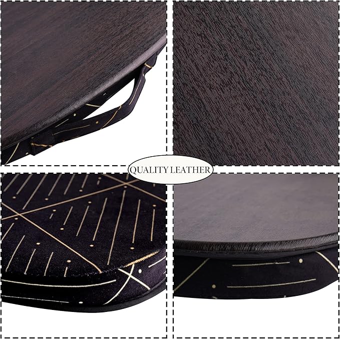 - STYLE.Designer fabric cushion and wood-inspired surface will complement any decor.
